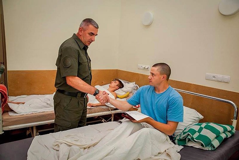 Заступник глави АП відвідав бійців Національної гвардії, які протистояли провокаціям на площі Конституції біля ВР 31 серпня, а нині лікуються у госпіталі МВС та лікарні №17 м. Києва, і вручив їм державні нагороди.