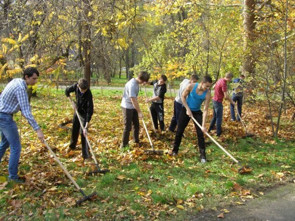 З собою потрібно мати рукавиці, сміттєві мішки, граблі, лопати.