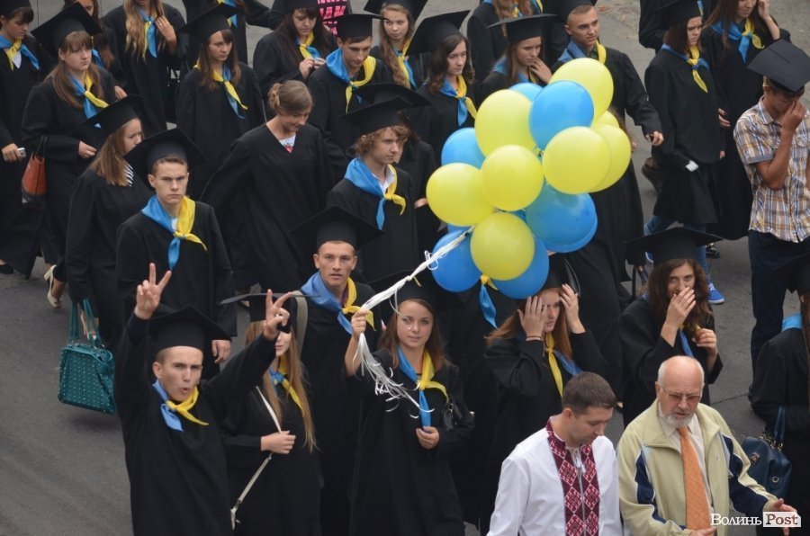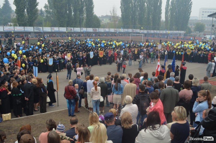 Близько чотирьох тисяч студентів Східноєвропейського національного університету імені Лесі Українки зібрались біля своєї альма-матір на посвяту.