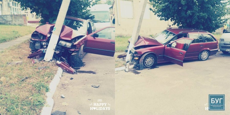 Автомобіль “БМВ” врізався на швидкості у стовп. Як стало відомо інтернет-виданню “БУГ”, за кермом іномарки була 14-ти літня дівчина, яка невпоралась з керуванням автомобіля і в’їхала прямо у стовп.