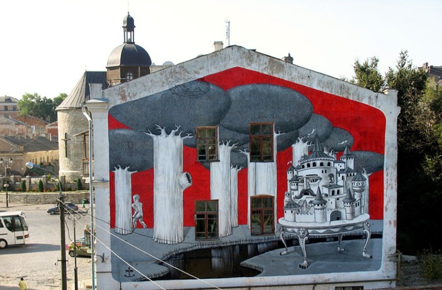 Кам'янець-Подільський можна по праву вважати столицею вуличного мистецтва України, адже сьогодні це місто асоціюється не лише із вежами старовинної фортеці, а й із справжніми шедеврами стріт-арту. Тут навіть створили новий туристичний маршрут, який пролягає у спальні райони, де і намагаються замалювати сірі стіни будинків організатори "Республіки".