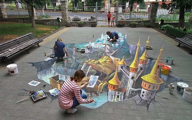 Також малюнок із серії «Круговорот» намалював відомий вуличний художник із Луцька Андрій Кальков та перший великий 3D-малюнок створив художник Володимир Пастушак.