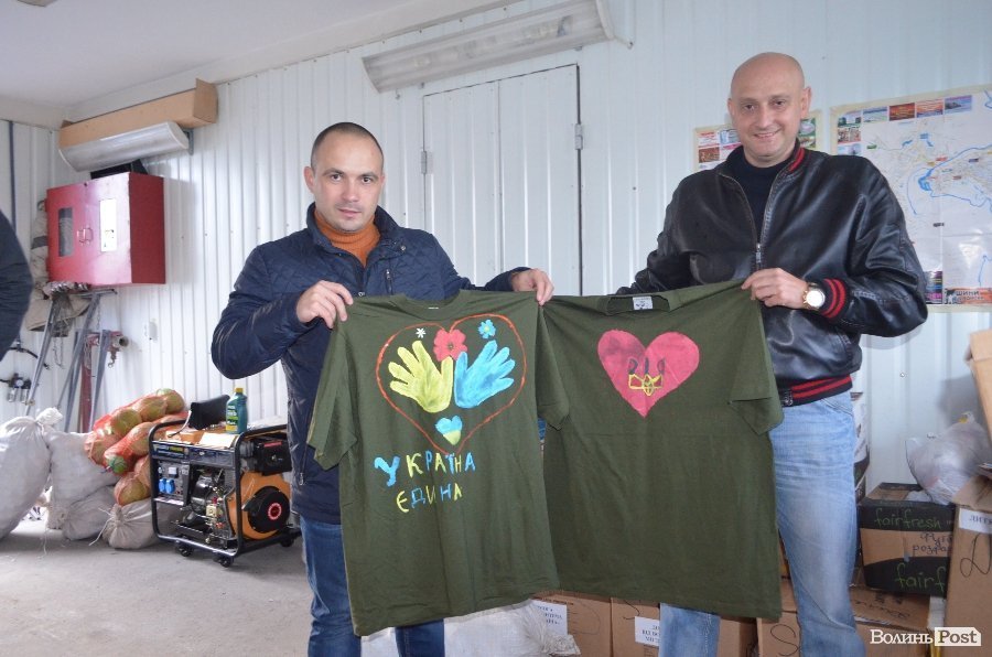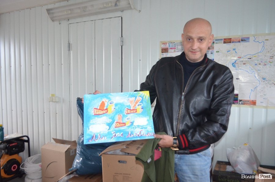 Окрім автомобіля, на Схід поїде й гуманітарна допомога, а саме: 50 комплектів демосезонної форми для бійців 72-ї окремої механізованої бригади, які для них закупив фонд «Волинська родина», продуктові набори, бинти, дизельний генератор, футболки, малюнки на яких малювали діти, а також картини, намальовані теж дитячими руками та інше.