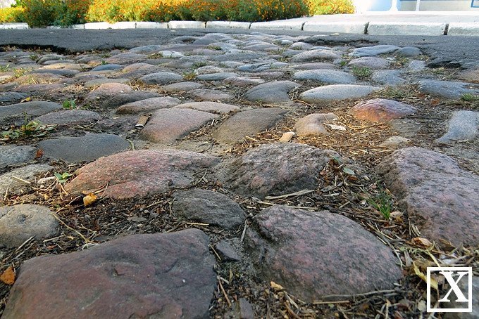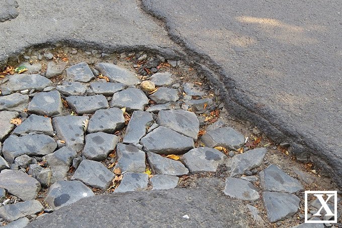 Нове покриття робили поверх старої бруківки. Саме тому до нашого часу її багато де збереглося. Ось, наприклад, дуже цікава яма утворилася на вулиці Коперніка напроти друкарні. Не просто видно бруківку початку ХХ століття, а й різночасові шари асфальту. Така собі дорожня археологія)).