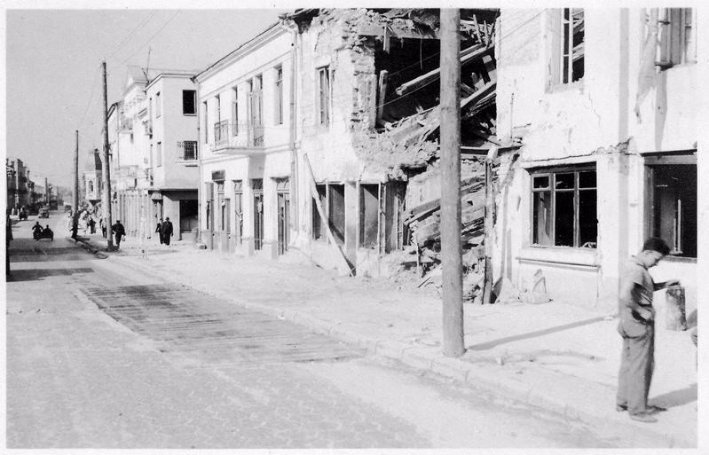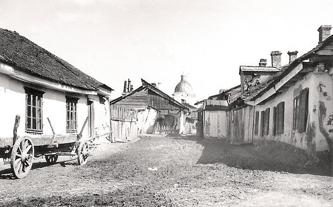 Типовий стан тодішнього замощення: забруковано тільки частину для транспорту, тротуари залишені м'якими. Фото з архіву Музею історії Голокосту в Єрусалимі «Яд Вашем»