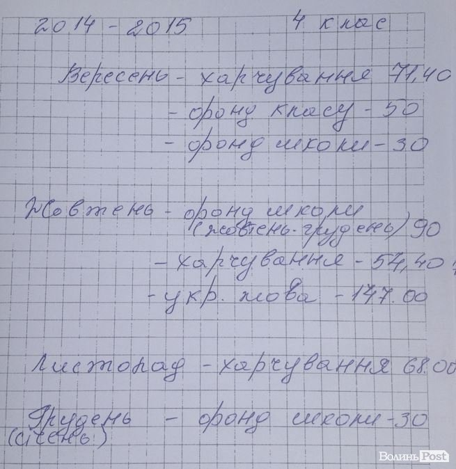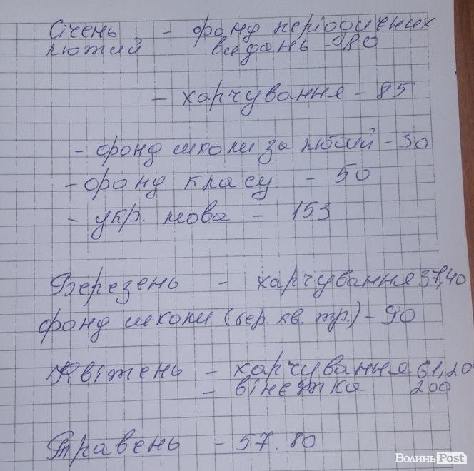 30 гривень витрачають у фонд школи. Як зазначила лучанка, на разі цю суму хочуть підняти, проте батьки проти, адже їм і так дорого.