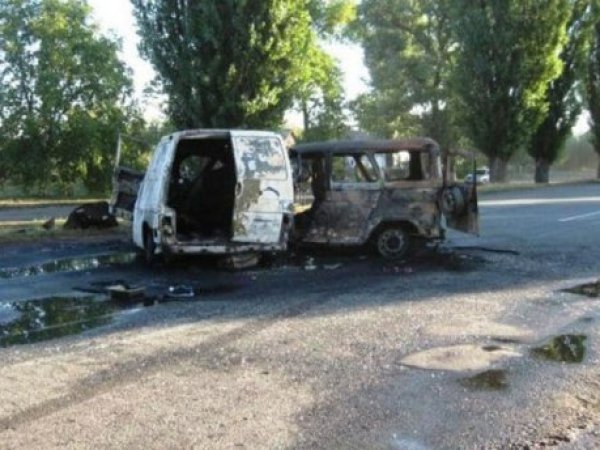 За попередніми даними, водій автомобіля Volkswagen Transporter Т4, рухаючись у напрямку Донецька, на шаленій швидкості виїхав на смугу зустрічного руху і зіткнувся з автомобілем «УАЗ 345195». Після зіткнення обидва автомобілі загорілися.
