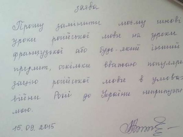 Таке бажання батьків обумовлене теперішнім станом відносин між Росією та Україною. «Прошу замінити моєму синові уроки російської мови на уроки французької або будь-який інший предмет, оскільки вважаю популяризацією російської мови в умовах війни Росії до України неприпустимою», - зазначається в заяві.