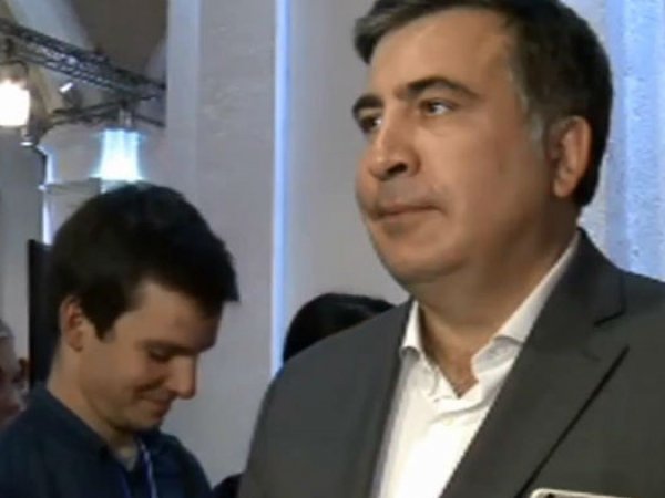 Це сталося на з'їзді партії «Блок Петра Порошенка» у Києві. Саакашвілі давав коментар для журналістів, але не очікувано зазвучав гімн України. Спочатку політик намагався продовжити бесіду, проте після кількох невдалих спроб замовк і став загадково дивитись вдалину.