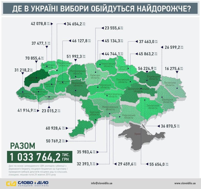 Проведення місцевих виборів в Україні буде коштувати 1 млрд 33 млн 764 тисяч, - інформує «Слово і Діло»