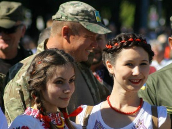 Разом з військовими у формі містом у вишиванках та з українськими прапорами прошли тисячі місцевих та гостей міста.