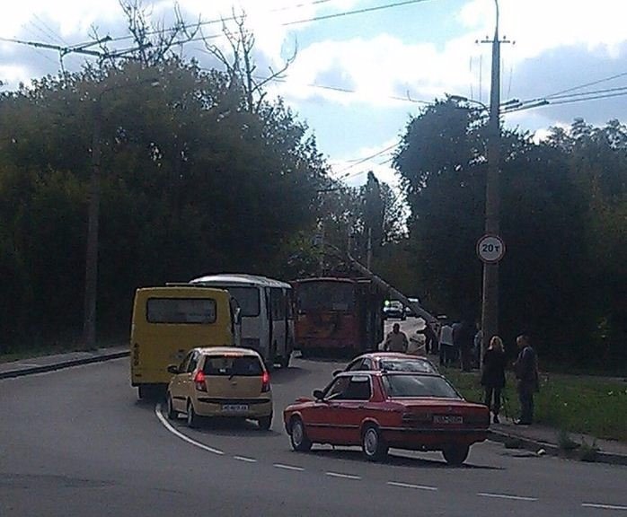 "На вулиці Данила Галицького стовп впав на тролейбус", - пише очевидець.