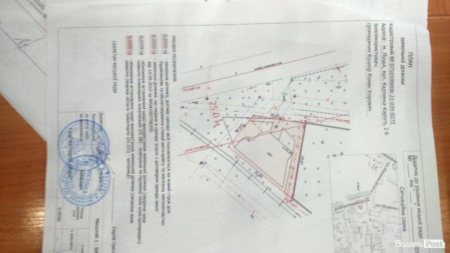 Цікаво, що під цим проектом стоїть підпис заступник начальника управління містобудування та архітектури Луцької міської ради Ярослава Матвіїва, який і затвердив дозвіл на будівництво в червоних лініях.