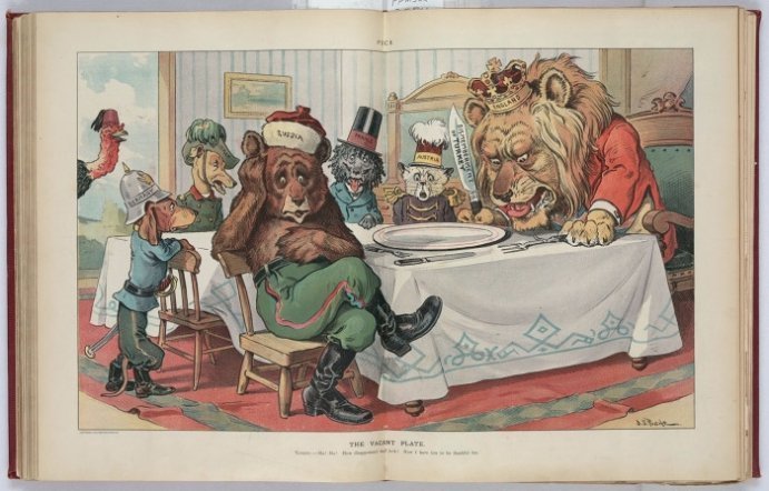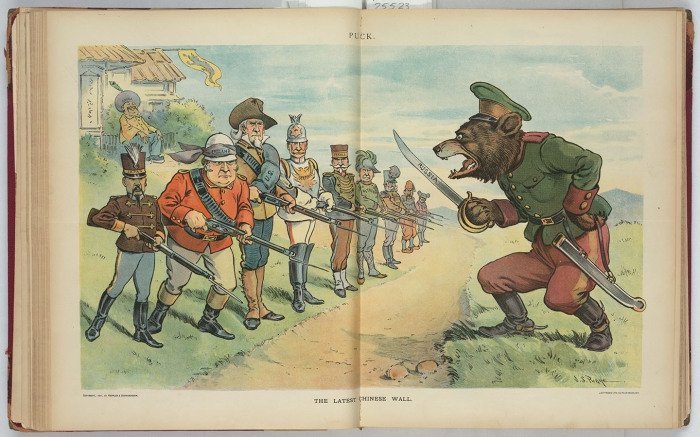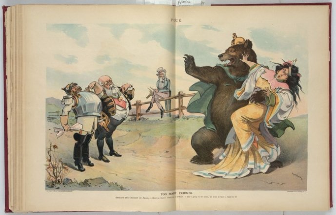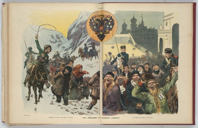 Особливе місце серед сатиричних малюнків займають карикатури, які висміюють Росію того часу і її імперські амбіції.