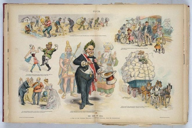 Популярний американський журнал "Puck" ("Пустун"), що видавався з 1871 по 1918 роки, був відомий в першу чергу своїми злободенними карикатурами майстерними шаржами.
