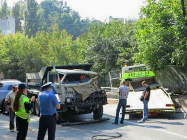 Страшна аварія у Києві: розбились евакуатор, КамАЗ, автобус і позашляховик