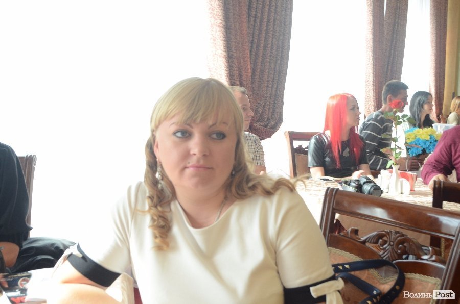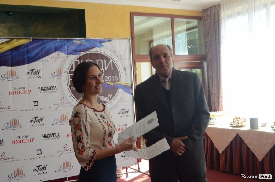 Організатор заходу, головний редактор журналу «Лише насолода» Олена Бекеша вручила скриньку з вирученими коштами військовому, який отримав поранення, коли перебував в АТО Миколі Денисюку.