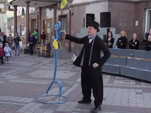 Декілька десятків глядачів зібрались на Театральній площі міста, аби на власні очі побачити справжній перформанс.