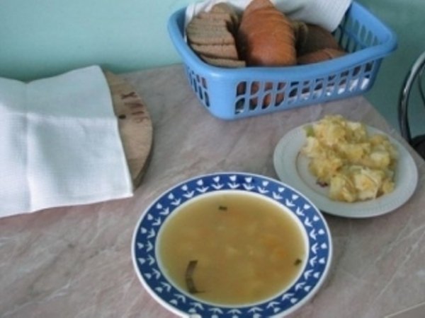 «Зелений борщ на перше. Картопля, каша і по ложці салату на друге. Це обід у волинській районній лікарні», – розповідають журналісти.
