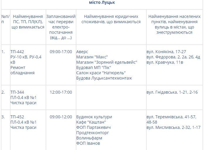 У зв'язку з чисткою траси та ремонтом обладнання, шість вулиць Луцька залишаться знеструмленими, повідомляють на офіційному сайті ПАТ «Волиньобленерго».