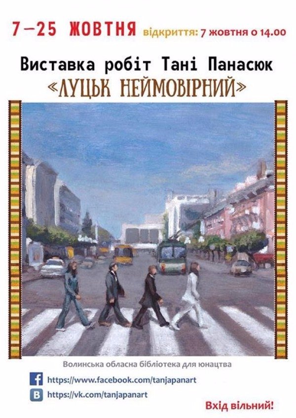 У середу 7 жовтня о 14.00 у Волинській обласній юнацькій бібліотеці стартує виставка робіт луцької художниці Тетяни Панасюк.