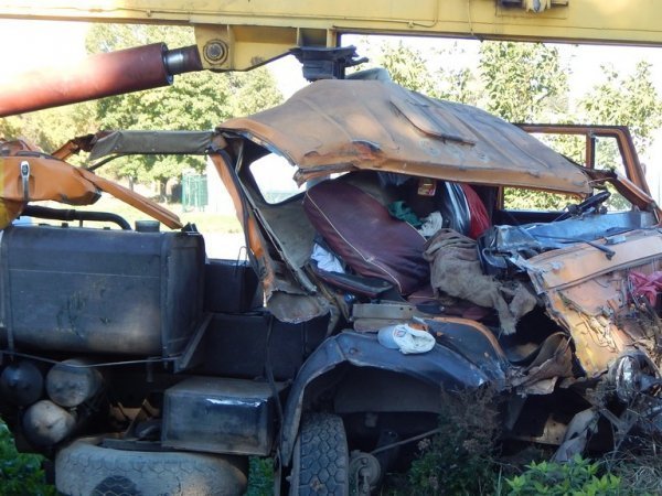 Зіткнення прийшлося на водійську кабіну крана та місця біля водія у бусі.