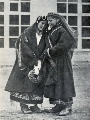 Молода і свашка. У молодої незаплетені коси. Поділля. Початок ХХ століття.