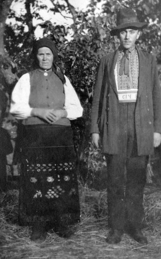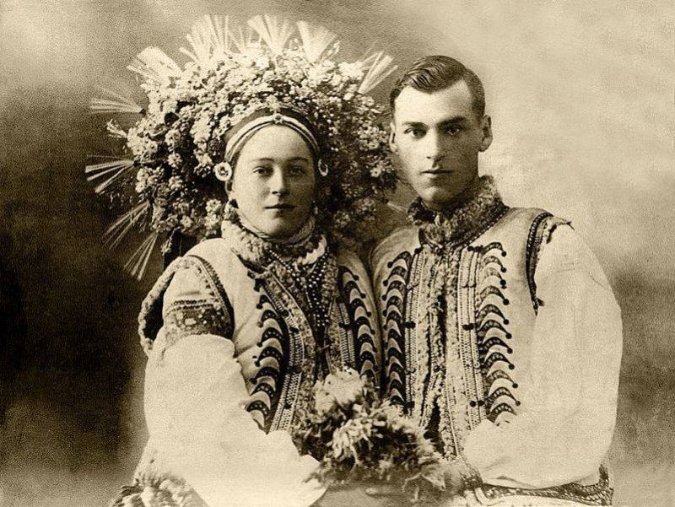 Весільна пара з Покуття. с. Корнич. 1920 р. Світлина зі збірки І. Гончара, Музей Івана Гончара, м. Київ