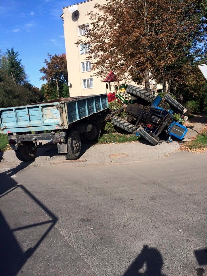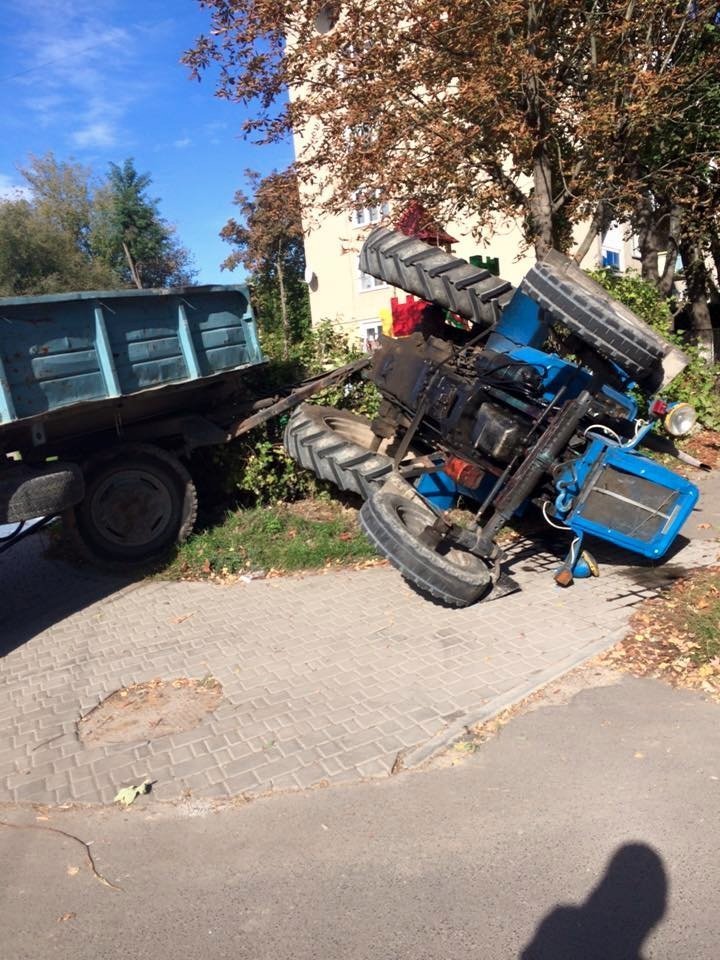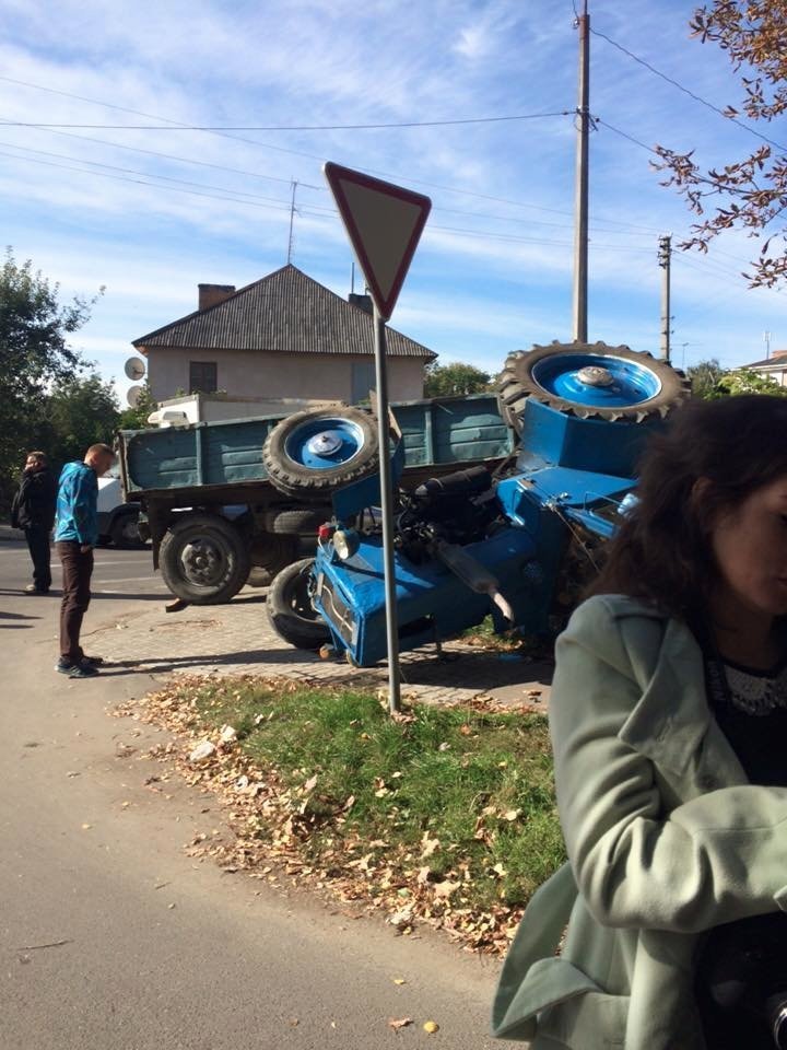 Близько 11:30 на перехресті вулиць Грибоєдова і Огієнка сталася аварія, внаслідок якої перекинувся трактор.