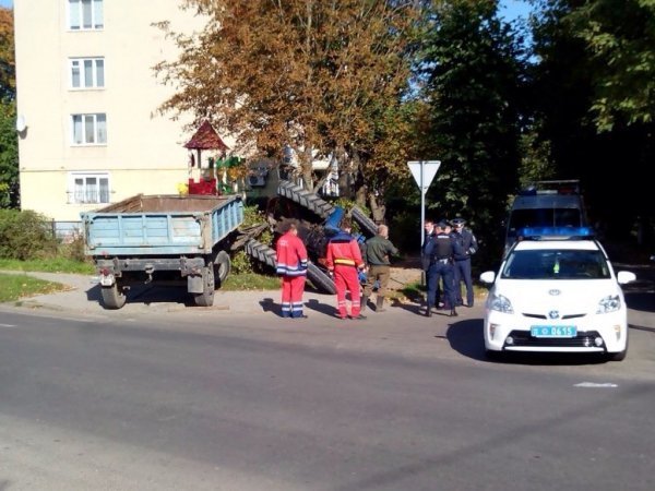За попередніми даними міліцейський автомобіль рухався з включеною сиреною, а водій трактора намагався звільнити проїзд.