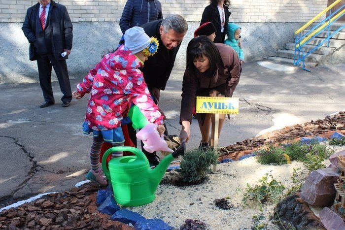 Варто зазначити, працівники садочка та батьки провели комплекс підготовчих робіт, зокрема, закладено альпійські гірки, облаштовано алеї та еко-куточок „Квітуча Україна”. Висаджено 65 хвойних кущів, 45 квітучих кущів, 40 кущів юки, ґрунтопокривні та квітучі рослини. За участі та допомоги батьків працівники закладу висадили близько 200 штук рослин.