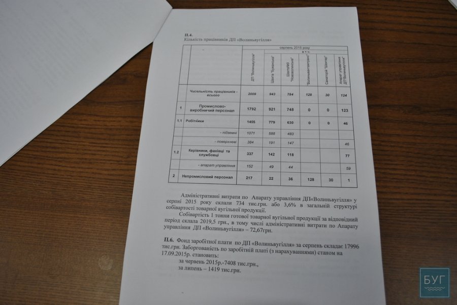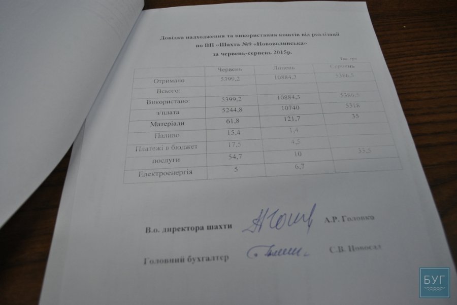 Цікавий факт: адміністративні витрати Апарату управління ДП “Волиньвугілля” у серпні 2015-го року склали 734 тисячі гривень, а на обладнання копальням виділено близько 60-ти тисяч.