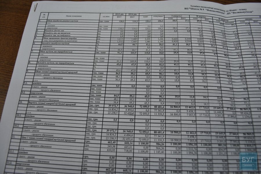Чому не виконується план? Все дуже просто. У техніко-економічних показниках до бізнес-плану ВП “Шахта №9″ Нововолинська” ДП “Волиньвугілля” якимось чином кількість діючих лав зведено до трьох. Відповідно, згідно цього документу план видобутку вугілля розрахований на три лави. Хоч насправді на дев'ятій шахті їх працює лише дві.