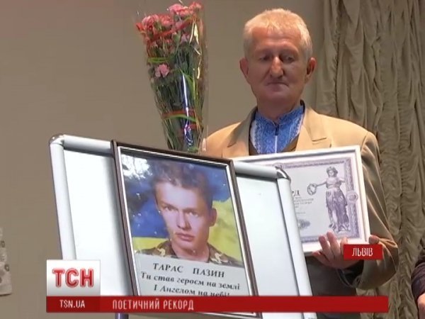 У Львові 59-річний Іван Пазин - батько загиблого бійця - встановив національний рекорд. Чоловік протягом 12 годин та 14 хвилин безперервно декламував авторську поезію, повідомляє ТСН.