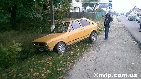 Трохи згодом у районі 4-ї Шахти автомобіль «Фольксваген Гольф» жовтого кольору хотів обігнати «Фольксваген Пасат» з правої сторони, зіткнувся з ним і злетів в кювет.