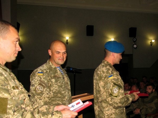За проявлену особисту мужність, стійкість та рішучість виявлені при виконанні військового обов’язку, в умовах, пов’язаних з ризиком для життя, під час захисту незалежності, суверенітету і територіальної цілісності України у ході проведення антитерористичної операції на території Донецької та Луганської областей нагородили нагрудним знаком “За оборону Донецького аеропорту” бійців 14 ОМБР.