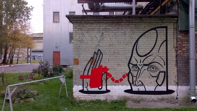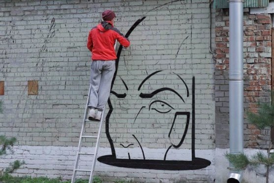 «Я люблю працювати в місцях, де немає людей і, можливо, мої малюнки ніхто не побачить. В горах, в покинутих санаторіях чи радянських заводах. Петербурзький Музей вуличного мистецтва мені нагадує ці місця. Хоча, звісно, цей завод функціонує, та й люди тут є. Але коли працюю, то настільки абстрагуюсь, що нічого не бачу і не чую», – ділиться своїми враженнями Сергій Радкевич.