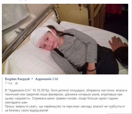 Я надіюся, що суд відбудеться над таким свавіллям власників розважального центру, щоб надалі ні одна дитина не постраждала, але наслідки можуть бути катастрофічні. Слава Богу, що в цієї дитини дуже сильний Ангел- охоронець!