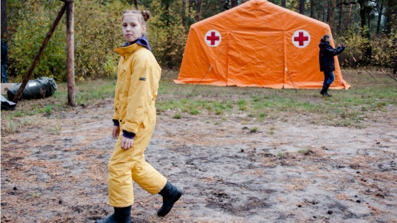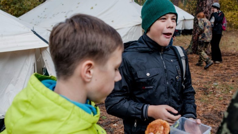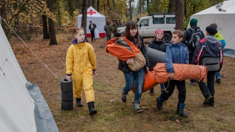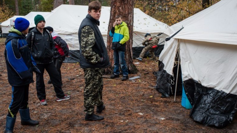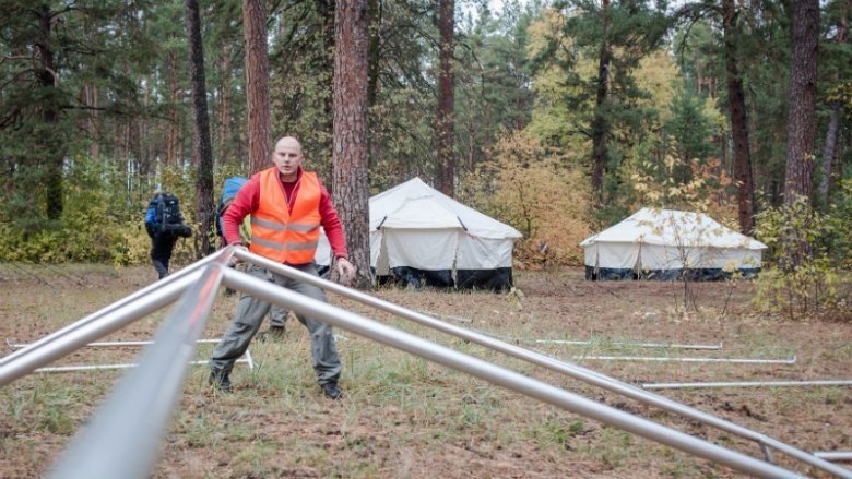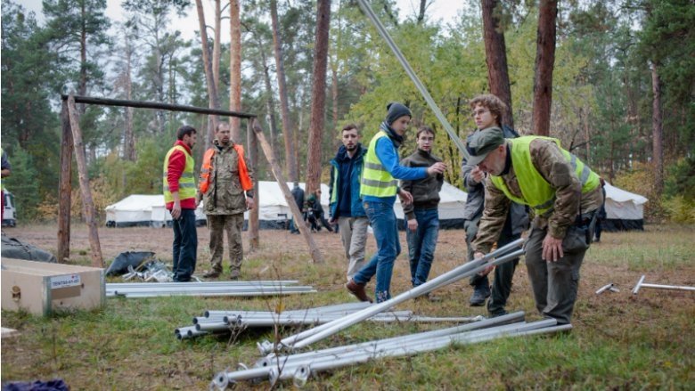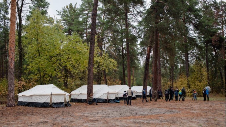 У ролі сирійців виступили київські діти скаути, які проходять курс екстремального виживання. Діти будуть жити у цих наметах принаймні тиждень, після чого волонтери і зможуть дати оцінку.