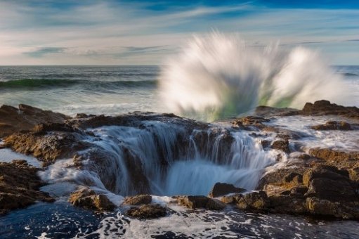 Цей витвір природи, що розташувався на мисі Перпетуа в центральній частині узбережжя штату Орегон, є кам’яною лійкою глибиною кілька метрів, яка під час припливів, відпливів або штормових вітрів, коли водну гладь розсікають бурхливі хвилі, перетворюється на справжній фонтан, який вибухає мільйонами солоних бризок.