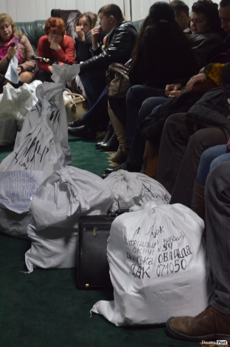 У луцькому виборчкомі станом на другу годину ночі вже встигли сформуватись черги з представників виборчих комісій.