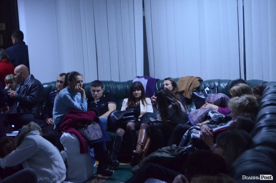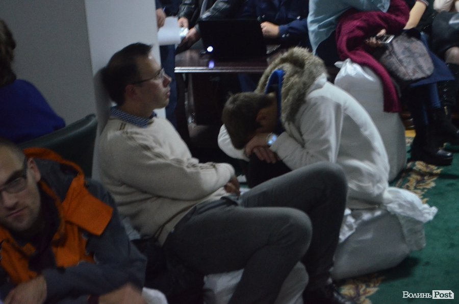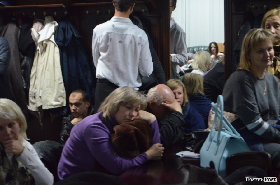 Станом на шосту годину ранку в холі Луцької міської ради зібралось близько шести десятків людей. Члени виборчих дільниць – втомлені та сонні.