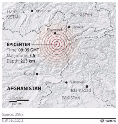 Потужний землетрус магнітудою 7,5 стався на північному сході Афганістану, передає Reuters, - інформує Громадське.TV.
