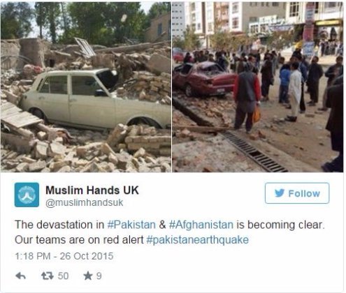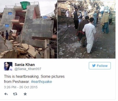 На півночі сусіднього Пакистану жертвами землетрусу стали 12 осіб. У лікарню міста Пешаварі доставили більш ніж півсотні поранених, очікується надходження ще більшої кількості постраждалих унаслідок обвалення будівель.