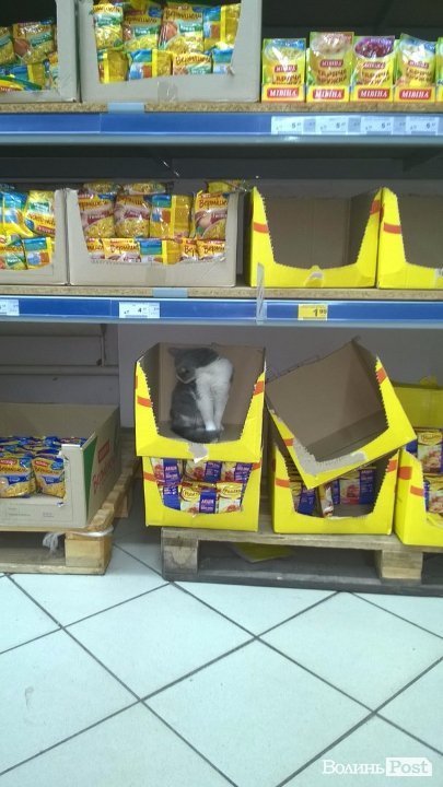 У луцькому супермаркеті поселився кіт. ФОТОФАКТ
