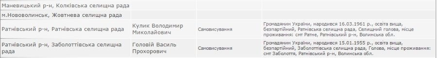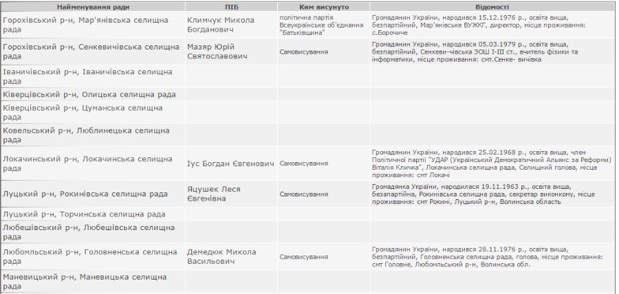ЦВК оприлюднила офіційні відомості про обраних на посади міських, селищних, сільських голів у Волинській області.