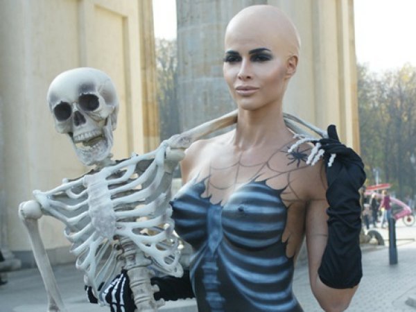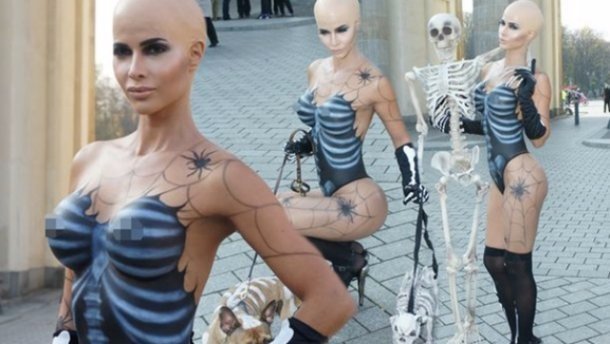 Шефер приміряла "костюм"-боді-арт на Хелловін у вигляді намальованого скелета. Дівчині загримували як тіло, так і голову.