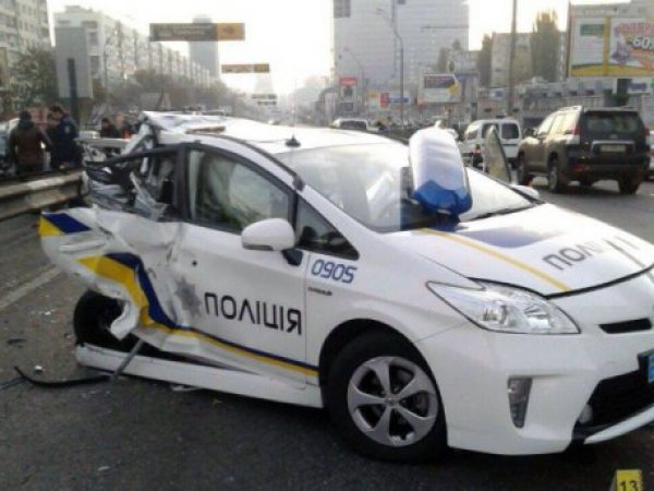 В ніч на 1 листопада у Києві п'яний водій Volkswagen Caddy на великій швидкості врізався в машину з поліцейськими.