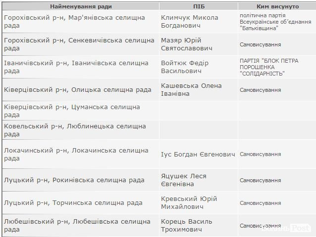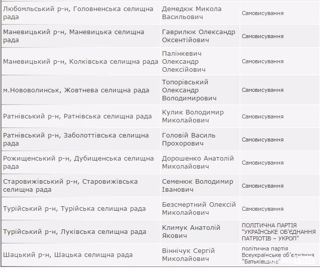 Також стали відомі результати виборів голів 19 селищних рад Волині: