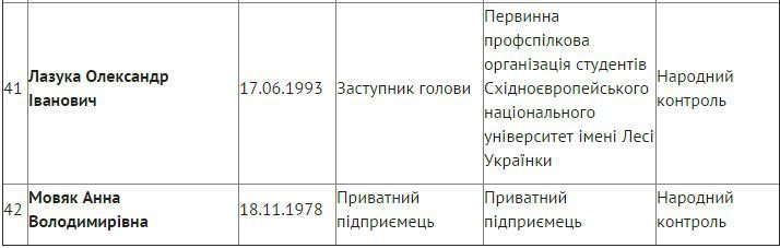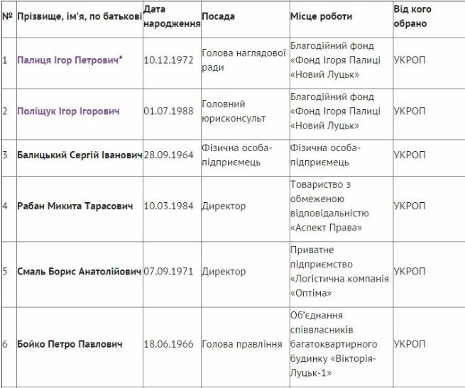 *Ігор Палиця, Ірина Констанкевич та Петро Савчук з УКРОПу та Олександр Пирожик зі «Свободи» обрані також депутатами Волинської обласної ради. Тому, замість них зайдуть наступні кандидати.